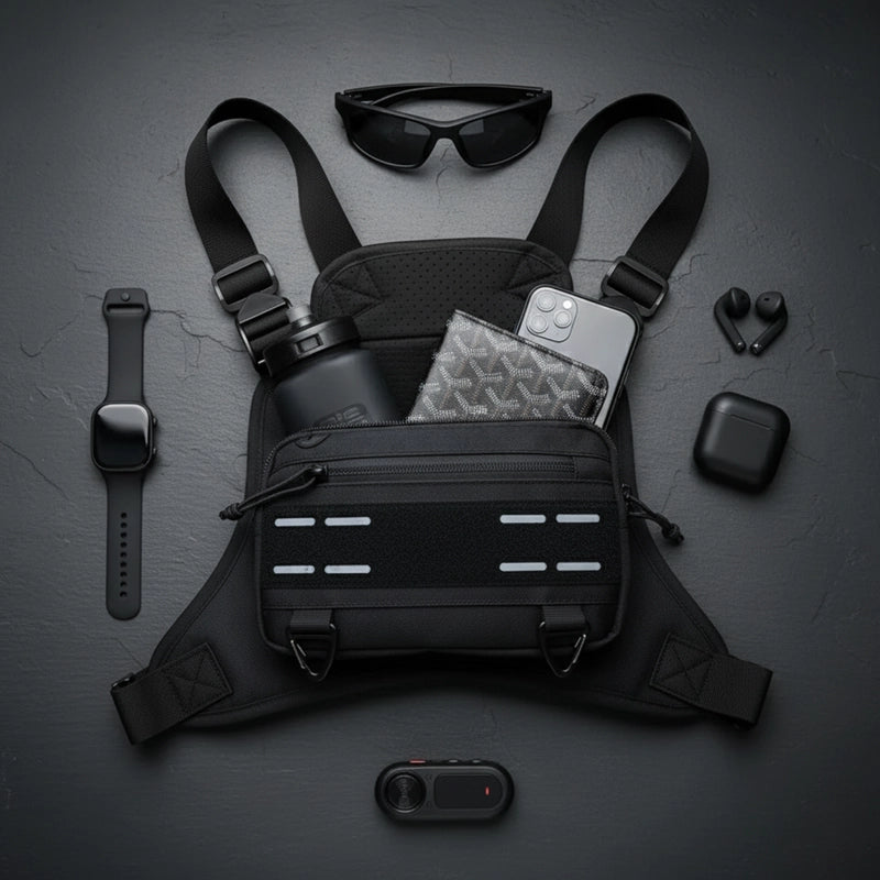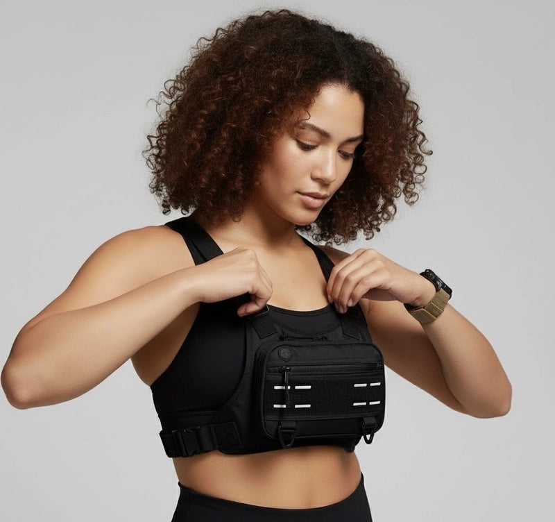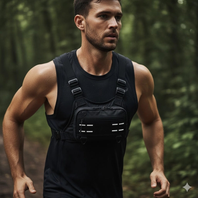 Safety is key! Our Adventure Chest Rig includes reflective strips for increased visibility in low-light conditions, ensuring you're seen and safe, whether you're running at dawn or hiking at dusk.